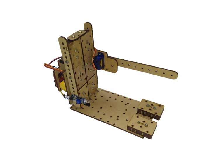 Com as peças universais você pode criar diversos dispositivos, este foi programado para funcionar como um controle de acesso, a partir de um sensor infravermolho e um servo motor.Invente suas montagens e desenvolva seus códigos.