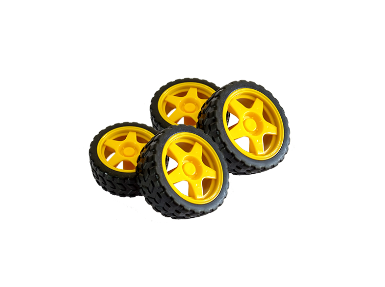 Rodas de liga leve!! Não, não, são de plástico mesmo, mas com o pneu de borracha elas topam qualquer parada!!